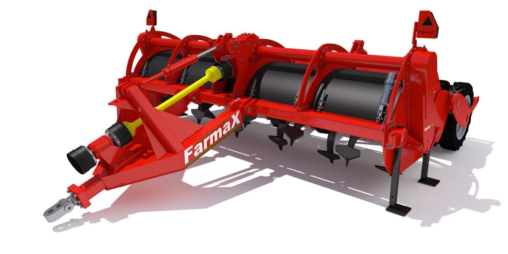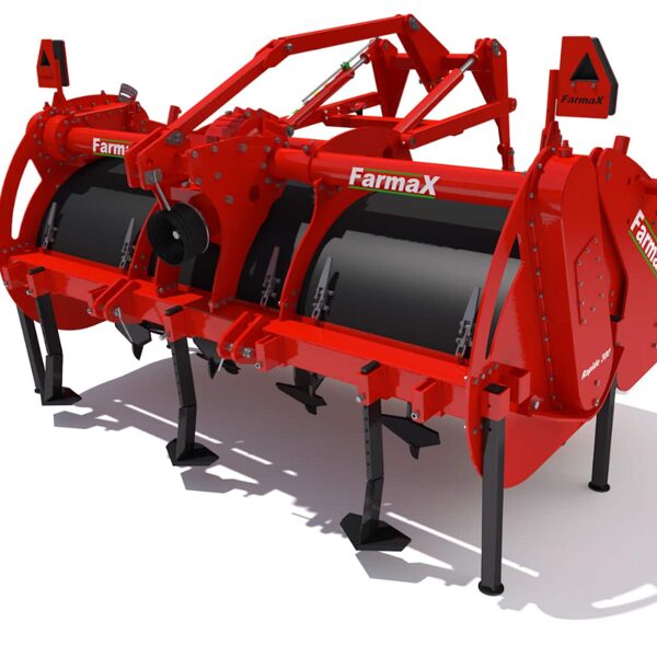Farmax offers a wide range of modern spaders, available with working widths from 90 cm to 450 cm and with a spading depth up to 120 cm. Farmax spaders can be easily supplemented by adding (for example) rotary harrows, a ring roller, a second roller, a disinfection roller, a three-point hitch for a seeder to also perform sowing in one pass, etc. To obtain more detailed information, see the FARMAX range of soil spaders: