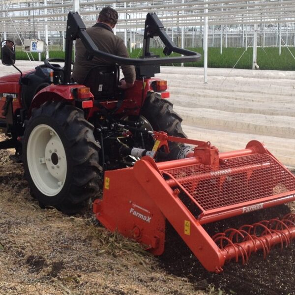 The Farmax ERP is a spader for light tractors. The great manoeuvrability and low integral weight of the ERP make it highly suitable for use in greenhouse horticulture, flower cultivation and tilling small plots.